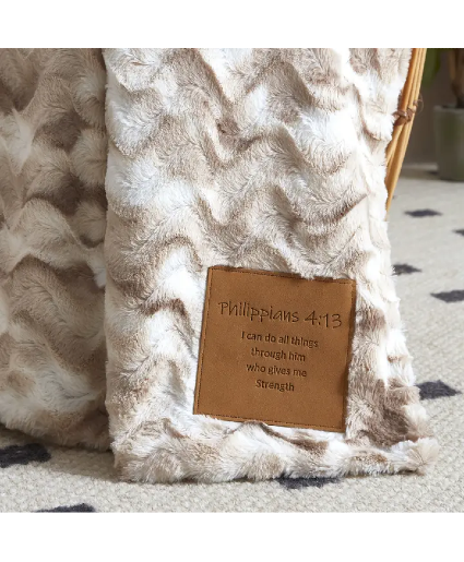 Regal Comfort® 1-Ply Faux Fur™ Patch Throw. Perfect for a loving gift. Our Patch Throws are a great way to express to someone how you feel when you can't come up with the words on your own. Blissfully soft to the touch with a deep luxurious faux fur, and a clean faux leather patch inscribed with a heartfelt message. Special patterns cut into the fur make the blankets unique.